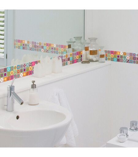 AMBIANCE-STICKER 6 stickers adhésifs frises carrelages Autocollant Frises Mosaïque Carreaux de ciment - CATARINA - 6 frises de 15 x 90 cm