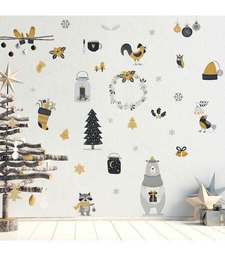 AMBIANCE-STICKER Sticker Noël animaux scandinave - Autocollants stickers adhésifs noël - décoration fêtes - 20x25cm