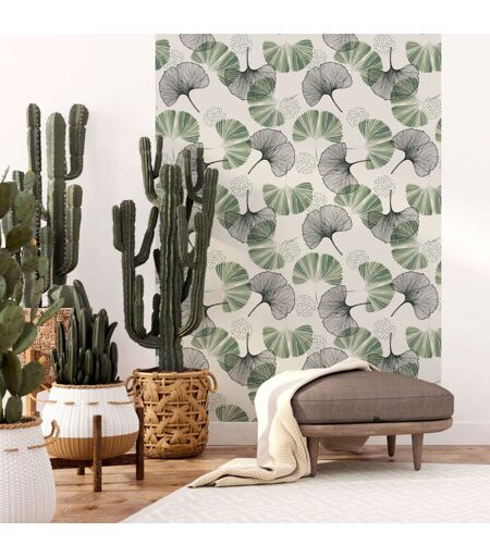 Ambiance-sticker - Papier peint intissé pré-encollé - feuilles de ginkgo gris vert - 1 rouleau de 300x60cm