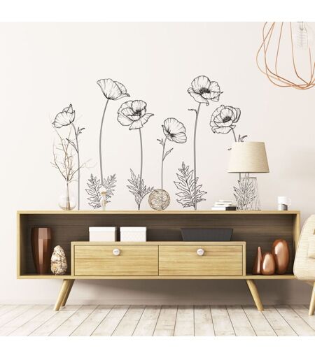 AMBIANCE-STICKER Stickers muraux Sticker Mural Autocollant - FLEURS COQUELICOTS - adhésifs fond transparent - 60x60cm
