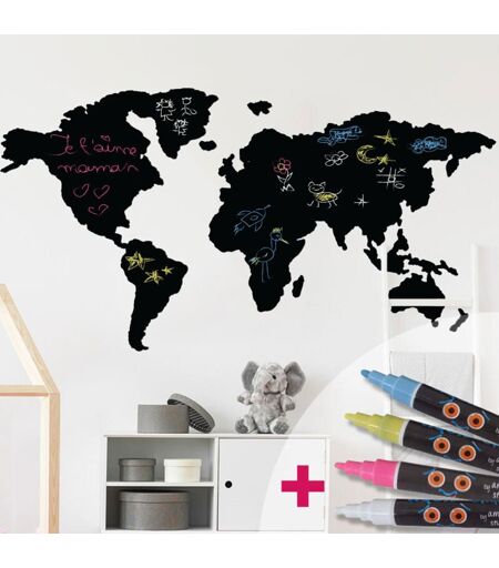 Ambiance-sticker - Sticker ardoise tableau noir - stickers muraux adhésif effaçable - carte du monde + 4 craies liquides - 55x105cm