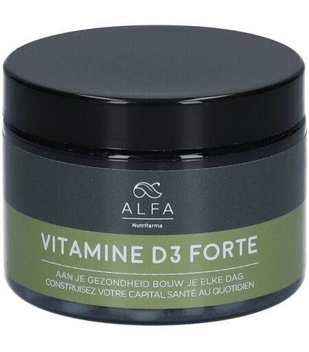 Complément alimentaire à utiliser dans le cadre d’une alimentation variée, équilibrée et d’un mode de vie sain.Alfa Vitamine D3 ForteAlpha Vitamin D3 Forte 6000 IU contient une dose élevée de vitamine D3 dans un comprimé sécable.La vitamine D contribue au maintien d'une ossature normale et au fonctionnement normal du système immunitaire.IngrédientsExcipients : (charge) cellulose microcristalline, (émulsifiant) dihydrogénodiphosphate de calcium et mono- et diglycérides d'acides gras, Brassica napus L. / colza.Données nutritionnellesPar demi-comprimé :Vitamine D3 (cholécalciférol) 75 mcg - 3000 IU 1500% AR** AR = Apport de référenceConseils d'utilisationUn demi-comprimé par jour, à prendre au cours d'un repas. Précautions d'emploiConserver dans un endroit frais et sec.Tenir hors de portée des enfants.Ne pas dépasser la dose recommandée.FabricantNutrifarmaCederstraat 18/A2220 Heist-op-den-BergBelgique ...