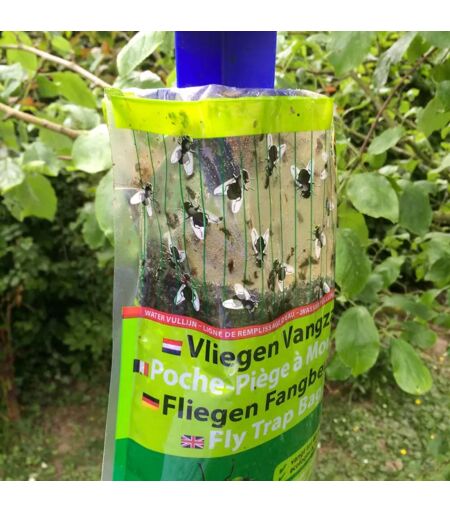 Poche-piège à mouches écologique à l'unité ou par lot de 3 Des mouches ne cessent de vous importuner et vous recherchez désespérément une méthode efficace pour vous en débarrasser ? Essayez ce piège à mouches d'une efficacité redoutable ! Ce sac anti mouches peut capturer jusqu'à 40 000 mouches. Il contient un appât écologique auquel vous devez ajouter de l'eau. Ensuite, accrochez-le autour de la maison, de votre terrasse, des étables ou des cages, par exemple. Les mouches sont inlassablement attirées par ce piège à mouches, se noient et y sont digérées. Ce piège s'installe à l'extérieur et dégage une légère odeur. Il resiste aux intempéries et ne nécessite aucun entretien. Il ne fait pas fuir les abeilles. Disponible à l'unité ou par lot de 3 ...