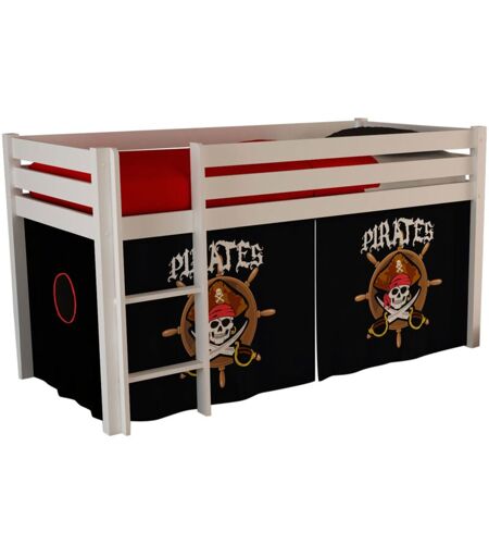 Les Tendances - Lit surélevé 90x200 cm avec échelle blanc décor pirates - pino