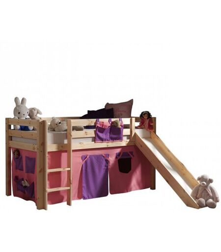 Lit mezzanine 90 x 200. Toboggan. Laque UV. EN747-1&2. Garantie : 1 an(s). Mati?re : Pin Massif. Couleur : Nature. Livr? sans matelas ni linge de lit ni accessoires Description du produit: Pino lit mezzanine avec toboggan 90 x 200 en pin massif, coloris bois naturel. L'enfant peut descendre le lit en utilisant le toboggan ou l'?chelle. Lit est prot?g? par le laque UV afin d'?viter la d?coloration du pin. Conforme aux normes EN747-1&2. Produit en 100% pin massif.. Dimensions: 209 x 217 x 114 cm. Nombre de parts: 1 Personne(s). Le sommier est inclus. Rideau de lit: Tente de lit Bella, comptant 3 parties que vous pouvez fixer au lit mi-hauteur Alex, Sofie, Charlotte ou Astrid. Si vous avez un autre lit mi-hauteur, veuillez acheter la version avec bande velcro. 100% POLYESTER ...