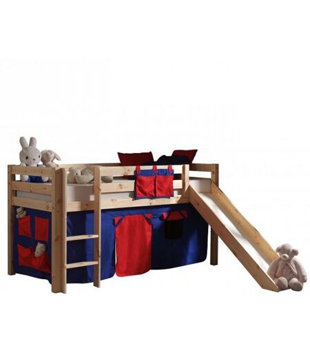Lit mezzanine 90 x 200. Toboggan. Laque UV. EN747-1&2. Garantie : 1 an(s). Mati?re : Pin Massif. Couleur : Nature. Livr? sans matelas ni linge de lit ni accessoires Description du produit: Pino lit mezzanine avec toboggan 90 x 200 en pin massif, coloris bois naturel. L'enfant peut descendre le lit en utilisant le toboggan ou l'?chelle. Lit est prot?g? par le laque UV afin d'?viter la d?coloration du pin. Conforme aux normes EN747-1&2. Produit en 100% pin massif.. Dimensions: 209 x 217 x 114 cm. Nombre de parts: 1 Personne(s). Le sommier est inclus. Dimensions : Devant : L.193 x P. 0,1 x H. 73 cm / C?t? : L. 83 x P. 0,1 x H. 73 cm Mati?re : Tissu Lavable ? 30? ? fixer soi-m?me ? l'aide du velcro Couleur : Bleu, Rouge Adaptable sur toute la collection Lit Enfant Pino (avec ou sans toboggan) 100% POLYESTER ...