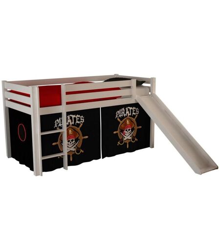 Vipack Pino Lit Mezzanine Avec Toboggan Pin Massif Blanc + Rideau De Lit Pirate