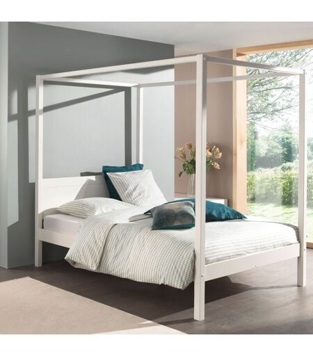 Les Tendances - Lit à baldaquin 140x200 cm blanc - pino