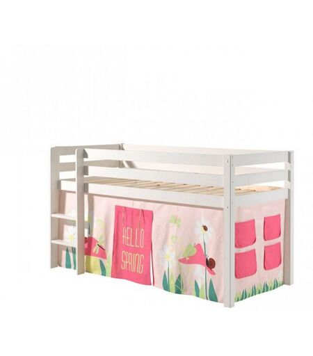 Le lit sur?lev? Pino est un lit haut de gamme fabriqu? en pin massif.. Caract?ristiques techniques :. Mati?re :. 100 % pin scandinave. Finitions :. Laque. Dimensions (couchage 90 x 200 cm) :. Longueur : 209.4 cm. Largeur : 105.4 cm. Hauteur : 114 cm. Dimensions des pieds : 6.5 cm x 6.5 cm. Sommier ? lattes inclus. A monter soi-m?me Livr? sans matelas ni linge de lit Rideau de lit: Cette jolie tente de lit Spring apportera une touche de couleur ? la chambre d'enfant. D?cor?e d'un imprim? qui fait tout de suite penser au printemps, elle se compose de 3 parties qui se fixent aux lits mi-hauteur Sofie, Alex, Astrid et Charlotte. Vous voulez fixer cette tente de lit ? un autre lit mi-hauteur? Veuillez acheter la version avec bande velcro. 100% COTON ...