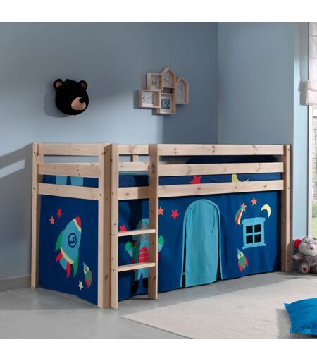 Les Tendances - Lit surélevé 90x200 cm avec échelle naturel décor fusée - pino