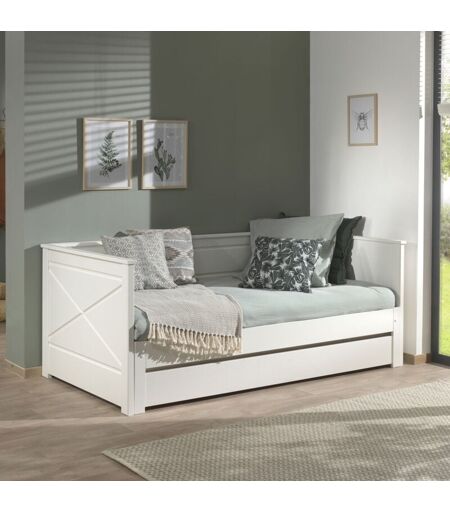 Vipack - Lit banquette extensible 90/180x200 cm avec tiroir blanc - pino
