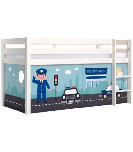 Vipack Pino Lit Sureleve En Pin Massif Avec Sommier Blanc + Rideau En 4 Parties Policier