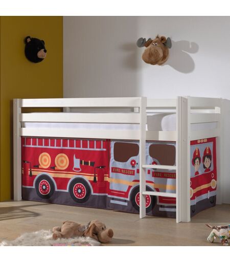 M&s - Lit surélevé avec échelle blanc décor camion de pompier - pino