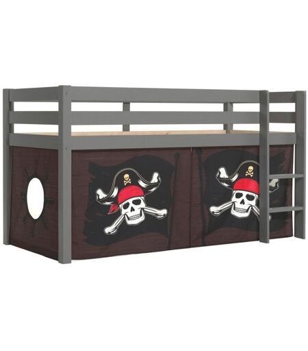 Vipack Lit Enfant Surlev Pino 90x200cm Gris + Rideau En 4 Parties Pirate Des Caraibes