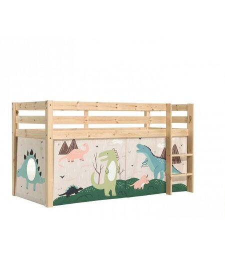 Vipack Pino Lit Compact Pin Massif Naturel + Rideau En 4 Parties Dinos