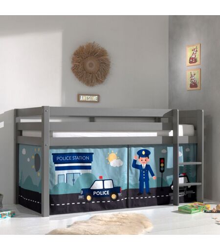 M&s - Lit surélevé avec échelle gris décor policier - pino
