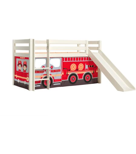 M&s - Lit surélevé avec toboggan blanc décor camion de pompier - pino
