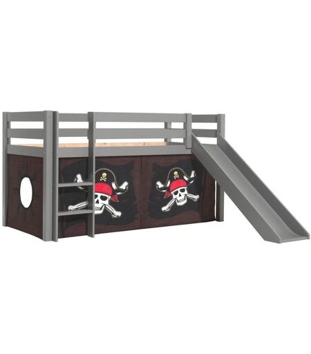 Vipack Pino Lit Mezzanine Avec Toboggan Pin Massif Gris + Rideau Pour Lit En 4 Parties Pirates