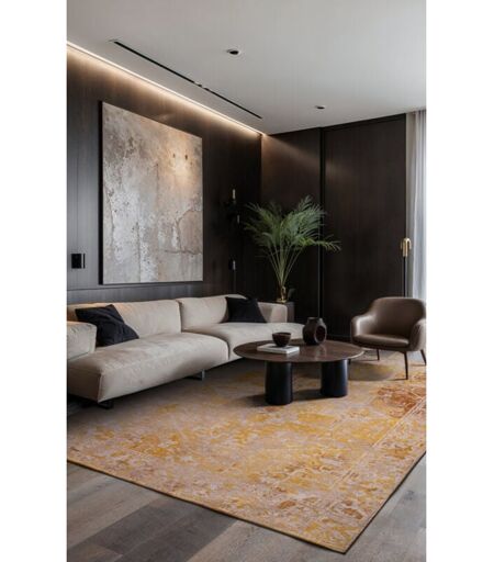 Beneffito - Tapis - Collection Heris Golden Wall - Tapis - Gold - 200x280cm - Tapis à Motifs, Finition Artisanale, Tissage en Belgique - Tapis de