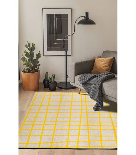 Tapis - collection caro Beneffito bright yellow - Tapis à Motifs, Finition Artisanale, Tissage en Belgique - Tapis d'intérieur moderne et doux