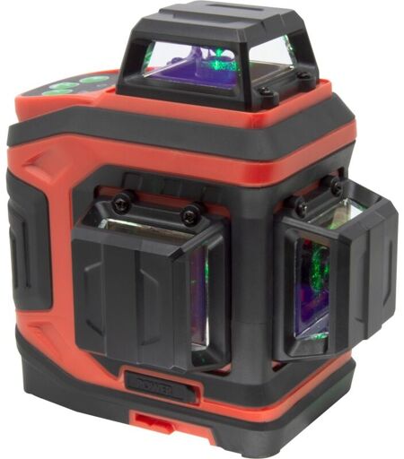 Petit laser croix et ligne 3D avec 1 ligne horizontale verte autour et 2 lignes verticales autour (= point d`aplomb haut et bas + 4 angles de 90 °). Nivellement pendulaire avec une précision de 2 mm/10 m et une portée de 40 m avec récepteur (en option). Batterie Li-Ion avec adaptateur secteur/chargeur. Classe de laser Class 2 - 515NM - ...