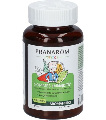 PRANAROM PRANARÔM - Aromaforce Junior Gommes Enfant Imunité Ravintsara Renforce Les Défenses Naturelles Aux Huiles Essentielles Vegan Sans Colorant Ni Arôme Artificiels Dès 6 Ans Cure 1 Mois Capsule(S) 60 pc(s)