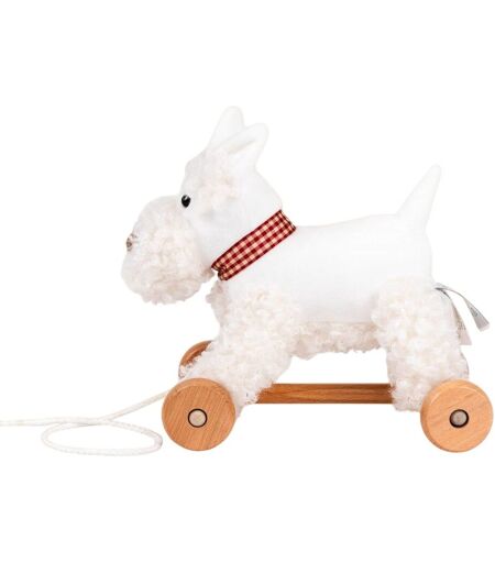 Et voici Lola sur ses petites roulettes en bois ! Cet adorable chien en peluche est prêt à suivre son petit maître partout ! Avec son look vintage et un poil très très doux pour les gros câlins, les enfants l'adorent ! Lola le chien à tirer, une peluche sur roulettes de la marque Egmont Toys. Référence 591036. ...
