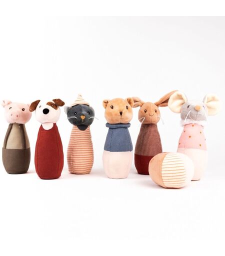 Ce jeu de quilles souple avec d'adorables animaux met en mouvement le jeu commun entre petits et grands ! Les grelots à l'intérieur amuseront les plus petits, tandis que les plus grands placeront les quilles et essaieront de les faire tomber avec la balle. Le jeu de bowling est une activité ludique et conviviale qui garantit amusement et mo ...