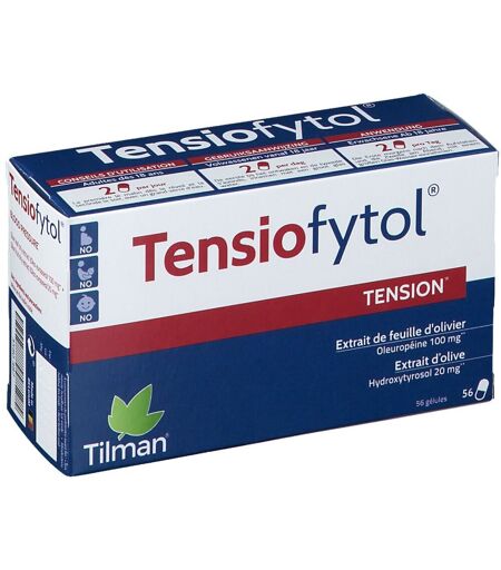 Complément alimentaire à utiliser dans le cadre d’une alimentation variée, équilibrée et d’un mode de vie sain.Tensiofytol® TENSION®L'extrait sec d'olives ( Olea europaea ) contient des polyphénols, dont l'hydroxytyrosol, le plus puissant antioxydant et radical libre de la nature.Grâce à ses propriétés antioxydantes, l'hydroxytyrosol contribue à réduire l'oxydation du cholestérol LDL et la formation de plaques d'athérome.Composition:Extrait sec de feuilles d'olivier, gélatine, extrait sec d'olive, charge : cellulose microcristalline. Phosphate tricalcique, anti-agglomérant : dioxyde de silicium, talc, sels de magnésium d'acides grasValeur nutritionnelle: Pour 1 capsuleExtrait sec de feuilles d'olivier167 mgExtrait sec d'olive53 mgConseil d'utilisationPrendre 1x par jour 2 capsules avec suffisamment de liquide.Précautions d'emploi:La quantité journalière recommandée indiquée ne doit pas être dépassée.Conserver dans un endroit frais (6-25 °C) et à l'abri de la lumière. Tenir hors de portée des enfants.Poids net:56 capsulesFabricant:Tilman NVZI Sud 155377 Belgien ...