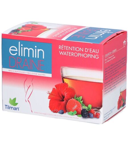 Complément alimentaire à utiliser dans le cadre d’une alimentation variée, équilibrée et d’un mode de vie sain. La tisane elimin DRAINE est à la fois une boisson délicieusement fruitée, au goût intense de fruits rouges, et un draineur qui aide à éliminer l’eau accumulée dans les jambes, les cuisses, les fesses et les hanches*. La tisane elimin DRAINE se compose d’orthosiphon, de bouleau et de prêle. Ces plantes aident à atténuer les rondeurs, notamment en stimulant l’élimination de l’eau qui engorge les tissus*. * Le bouleau favorise la sécrétion et le drainage au niveau du foie et de la vésicule biliaire. Avec l'orthosiphon, il facilite la perte de poids en complément de mesures diététiques. La prêle des champs soutient la fonction hépatique. Allégations de santé en attente d'approbation par l'EFSA. IngrédientsPar sachet : Hibiscus fleur 35% • Prêle herbe 18% • Pomme pulpe 17% • Orthosiphon feuille 12,5% • Bouleau feuille 12,5% • Arômes de fruits rouges. Conseils d'utilisationsAdultes : 2 à 3 tasses par jour Précautions d'emploi Ne pas consommer durant la grossesse ni l'allaitement. Ne pas donner aux enfants. Poids net24 sachetsFabricantTilman15, ZI Sud5377 BaillonvilleBelgique ...