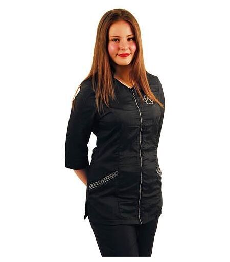 Robe de coiffure au design très élégant. Les mêmes dents de la fermeture éclair, les bords des poches et le motif d'une empreinte digitale sur la poitrine sont décorés d' ornements brillants. ...