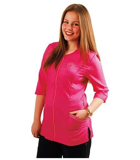 Robe de coiffure au design très élégant. Les mêmes dents de la fermeture éclair, les bords des poches et le motif d'une empreinte digitale sur la poitrine sont décorés d' ornements brillants. ...