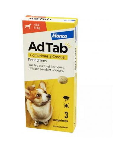 Parapharmacie > Vétérinaire > Anti-parasites > Anti-puces et anti-tiques AdTab 225 mg Puces et Tiques Chiens Comprimés à Croquer x 3 - Anti-puces et anti-tiques - Pharmacie en ligne LaSante.net