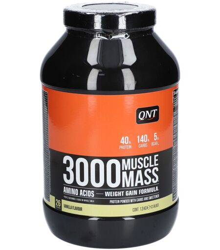 Complément alimentaire à utiliser dans le cadre d’une alimentation variée, équilibrée et d’un mode de vie sain.Le Muscle Mass Gainer 3000 est idéal pour les personnes qui ont du mal à manger de grande quantité pour atteindre leur excédent calorique et par conséquent prendre de la masse. Grâce à sa composition optimale non seulement riche en protéines, mais aussi en glucides et en acides aminés, le Muscle Mass Gainer 3000 se distingue des autres gainers. Il est le complément indispensable pour vous aider à atteindre vos objectifs de prise de poids et de masse musculaire.SI VOUS ÊTES EN PRISE DE MASSE, CE GAINER EST POUR VOUSEssentielle lors de cette période importante pour un sportif, la protéine issue du Muscle Mass Gainer 3000 contribuera à augmenter le volume du muscle, mais aussi à en prendre soin. En effet, en plus d’une concentration riche en protéine de whey, cette formule de très haute qualité contient des BCAA de source naturelle, des acides aminés essentiels, ainsi qu’un excellent complexe de vitamines et d’hydrates de carbone.POURQUOI PRENDRE UN GAINER?Prendre un gainer comme le Muscle Mass Gainer 3000, c'est comme avoir un coach personnel en nutrition à vos côtés. Ce gainer est conçu pour te libérer de la contrainte de devoir consommer d'énormes quantités de nourriture pour atteindre un excédent calorique. Il te donne le pouvoir de devenir la meilleure version de toi-même, en t'aidant à atteindre tes objectifs de prise de masse de manière plus simple et plus efficace. Imagine-toi, enfin capable de gagner cette masse musculaire que tu as toujours voulu, sans te sentir submergé. C'est ça, la magie du Muscle Mass Gainer 3000!QUAND PRENDRE UN GAINER?Le moment idéal pour prendre un gainer dépend de ton style de vie et de tes besoins caloriques. Mais une chose est sûre : le Muscle Mass Gainer 3000 est là pour s'adapter à toi, pas l'inverse. Tu peux le prendre entre les repas pour maximiser ton apport calorique ou après une séance de sport intense pour aider à la récupération et au développement musculaire. C'est comme avoir un soutien constant, prêt à t'aider à libérer ton plein potentiel à tout moment de la journée.BénéficesIdéal pour la croissance musculaireExcellent mélange d'e whey protéine et d'hydrates de carboneRiche en acides aminésIngrédientsMaltodextrine, dextrose, protéine de lactosérum concentrée (contient du LAIT), arôme, fructose, épaississants E412/E466, vit. B3 (Nicotinamide), édulcorant E951, vit. B5 (D-pantothénate de calcium), vit. B12 (Cyanocobalamine), vit. B6 (Chlorhydrate de pyridoxine), vit. B2 (Ribo¹avine). Contient une source de phénylalanine.Allergènes : Lait.Valeurs nutritionnelles Pour 150 gPour 100 gValeur énergétique598 kcal398 kcalMatières grasses2,2 g1,5 g- Acides gras saturés1,4 g0,9 gGlucides118,8 g79,1 g- Sucres61,1 g40,7 gProtéines25,1 g16,8 gSel0,11 g0,07 gL-Leucine (BCAA)2610 mg1740 mgL-Valine (BCAA)1275 mg850 mgL-Isoleucine (BCAA)1485 mg990 mgVitamine B5(*76%) 4,568 mg3,045 mgNiacine(*86%) 13,704 mg9... ...