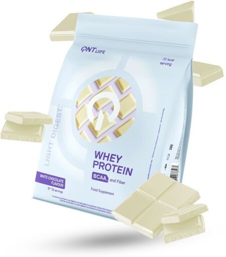Complément alimentaire à utiliser dans le cadre d’une alimentation variée, équilibrée et d’un mode de vie sain.La LIGHT DIGEST WHEY PROTEIN est une toute nouvelle génération de protéine, formulée pour s'adapter à tous les types d'athlètes (débutants ou confirmés), mais également à toute personne active.Ce produit aide de façon significative dans le cadre de l'amélioration des performances sportives, quel que soit le type de sport dans lequel vous êtes engagé (e) De plus, la Whey aide à maintenir la tonicité musculaire et le développement musculaire * . La LIGHT DIGEST WHEY PROTEIN permet également de récupérer plus facilement après une session d'entraînement, que ce soit dans le domaine du bodybuilding ou tout autre domaine. Ce produit aide également les personnes désirant perdre du poids, lorsqu' incorporé à une diète. Une grande variété de saveurs Vous pouvez choisir entre 12 arômes, tous plus délicieux les uns que les autres : banane, chocolat belge, chocolat blanc, chocolat-noisette, noix de coco, crème brûlée, cuberdon, citron-macaron, neutre, pistache. Sans compter les nouveaux arômes développés en permanence pour satisfaire vos attentes. Et si vous ressentez des difficultés à choisir un arôme, nous vous proposons ce produit en version pack : il contient 12 doses de 40 grammes (2 portions), afin que vous puissiez goûter en toute quiétude ces délicieux arômes. Une formule riche en fibres et pauvre en sucres Avec une formule idéale riche en inuline, (660 mg par portion), et aucun sucre ajouté, la LIGHT DIGEST WHEY PROTEIN est un mélange de concentré de Whey et d'isolat, contenant une quantité élevée de BCAA's (L-Leucine, L-Valine and L-Isoleucine), des acides aminés essentiels au développement et la régénération musculaire. En sus, cette Whey ne contient pas de gluten, ni de soja, ce qui en fait la partenaire idéale des personnes ne tolérant pas ces ingrédients. Une Whey Très facile d'utilisation Cette poudre protéinée se mélange très facilement avec de l'eau ou de lait, selon votre préférence. Il suffit d'ajouter 20 grammes de poudre à 200 ml d'eau ou de lait, de mélanger vigoureusement et de consommer ! Un shake fait minute, prêt à être consommé avant ou après votre séance. Si vous êtes de nature créative, vous pourrez facilement créer vos propres recettes! Cette poudre de Whey se mélange parfaitement avec certains types de préparations pour desserts qui satisferont vos envies sucrées avec une touche protéinée !Composition:Protéines de lait [protéine de lactosérum concentrée (contient du lait), isolat de protéine de lactosérum (contient du lait)], inuline, arômes, épaississants: E412/E415, chlorure de potassium, édulcorant: E955, chlorure de sodium, colorant: E160aValeur nutritionnelle: Pour 20 g Pour 100 g Energie 320 kj / 76 kcal 1598 kj / 382 kcal Lipides 0,9 g 4,7 g - Saturés 0,7 g 3,3 g Glucides 1,8 g 8,9 g - Sucres 1,5 g 7,4 g Fibres alimentraires 0,6 g 3,1 g Protéines 15,4 g 77 g Sel 0,09 g 0,43 g Inuline 620 mg 3100 mg Chloride 80... ...