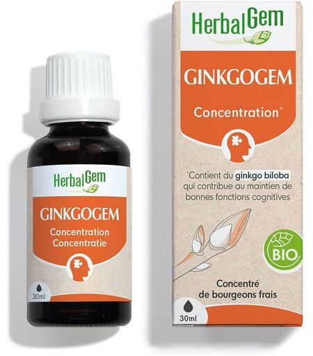 Il est important d'avoir une alimentation variée et équilibrée et un mode de vie sain. Complexe intégré de Ginkgo biloba - Améliore la concentration GINKGOGEM associe les propriétés de plusieurs parties du Ginkgo biloba afin de vous offrir un produit encore plus efficace : un macérat-mère de bourgeons frais, un extrait fluide de feuilles sèches et une teinture-mère de feuilles fraîches. Ce complexe favorise la concentration et soutient efficacement votre circulation cérébrale grâce à son action antioxydante. Le Ginkgo Biloba peut vivre 4000 ans ... et vous ?Composition:Bourgeons et feuilles de ginkgo biloba*.*Ingrédient issu de l’agriculture biologique (contrôle Certisys BE-BIO-01) - BIO signifie : issu de l’agriculture biologique (contrôle Certisys BE-BIO-01).Conseil d'utilisation: 10 à 30 gouttes par jour.Précautions d'emploi: Tenir hors de portée des jeunes enfants. Conserver au frais et au sec.Fluidifiant sanguin : la femme enceinte prendra GINKGOGEM sur recommandation d’un professionnel de la santéPoids net: 30 mlFabricant: HerbalGem S.A. Place des Chasseurs Ardennais 6690 VIELSALM ...