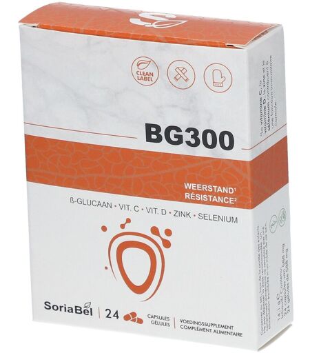 Complément alimentaire à utiliser dans le cadre d’une alimentation variée, équilibrée et d’un mode de vie sain.Qu’est-ce que le BG300?BG300 est une formule complète et unique à base d’extrait de levure de bière optimisé avec une concentration élevée en ß-glucanes (Saccharomyces cerevisiae) (Yestimun®) avec de la vitamine C, de la vitamine D, du zinc et du sélénium.Grâce à l’action synergique des ingrédients, le BG300 est la formule idéale pour soutenir l’immunité1.La vitamine C, la vitamine D, le zinc et le sélénium contribuent au fonctionnement normal du système immunitaire.Quelle est la composition du BG300?Extrait de levure de bière optimisé avec une concentration élevée en ß-glucanesLe BG300 contient une dose élevée de ß-glucanes purs; 300 mg par capsule. Les ß-glucanes Yestimun® sont extraits de la levure de bière, 100% naturels et de très haute qualité. Grâce à la grande pureté de la structure des bêta-glucanes, ils sont très bien reconnus par l’organisme. Ceci est soutenu par les résultats de multiples études cliniques.Levure de sélénium biologiqueLe BG300 contient aussi de la levure enrichie de sélénium, une source naturelle de sélénium organique sous la forme naturelle la plus biodisponible: la sélénométhionine. Plusieurs études ont montré que la levure de sélénium est très stable et a une très grande biodisponibilité par rapport aux formes inorganiques de sélénium.2Gluconate de zincLe zinc est un oligo-élément nécessaire entre autres pour la formation des protéines et pour le fonctionnement normal du système immunitaire. Le zinc fait partie de nombreuses enzymes dans le corps. Les enzymes sont des substances essentielles pour les processus métaboliques dans le corps. Le zinc contribue à la formation des protéines3, le développement et le renouvellement des tissus4, le métabolisme5 et une bonne fonction du système immunitaire6.Vitamine CLa vitamine C a une fonction antioxydante et est nécessaire pour la formation du tissu conjonctif, pour l’absorption du fer et une fonction immunitaire normale.Vitamine DIl a été utilisé la forme la plus biodisponible de vitamine D, la vitamine D3 ou le cholécalciférol. Celle-ci est plus facilement assimilée que la vitamine D2.La vitamine D est une vitamine bien connue avec plusieurs fonctions:soutient la résistance naturelleaide à maintenir des os solides, des muscles souples et des dents fortesaide l’organisme à assimiler normalement multiples minérauxLes gélules sont 100% végétales et ne contiennent pas de charges ou d’excipients synthétiques.Quand l’utiliser?Le BG300 est conseillé pour maintenir une fonction immunitaire normale1.Le BG300 peut également être utilisé pour rétablir des carences nutritionnelles spécifiques.1 gélule par jour, le matin, est suffisante comme dose d’entretien.Pour soutenir votre résistance de manière optimale, il faut prendre 2 gélules par jour, 1 gélule le matin et 1 gélule le soir.2Yoshida M, Fukunaga K, Tsuchita H, Yasumoto K. An evaluation of the bioavailability of... ...