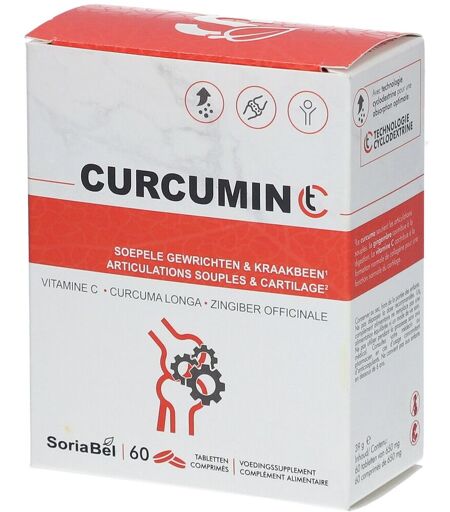 Complément alimentaire à utiliser dans le cadre d’une alimentation variée, équilibrée et d’un mode de vie sain.Qu’est-ce que le Curcumin CT?Le Curcumin CT est une formule unique à base d’extraits optimisés de curcuma et de gingembre, associés à de la vitamine C, pour soutenir les articulations souples.Le Curcumin CT contient de la vitamine C, qui contribue à la formation normale du collagène et à la fonction normale du cartilage.Quelle est la composition du Curcumin CT?Le Curcumin CT contient un extrait de curcuma optimisé et concentré, avec une dose élevée en curcuminoides actifs (Curcumin C3 complex®). Il existe plus de 80 études, dont plus de 45 études cliniques publiées dans des revues scientifiques sur le complexe Curcumin C3®.Le curcuma a été optimisé avec la technologie de la cyclodextrine, qui assure l’absorption la plus élevée possible. Le Curcumin CT contient également de l’extrait de gingembre optimisé. Comme le curcuma, le gingembre aide à maintenir des articulations souples.L’association du gingembre et du curcuma renforce cet effet. Le Curcumin CT contient également de la vitamine C qui contribue à la formation normale du collagène et une fonction normale du cartilage.Technologie cyclodextrineDes substances hydrophobes comme la curcumine sont difficiles à absorber par l’organisme. Une bonne biodisponibilité des ingrédients est cependant très importante pour obtenir les effets recherchés. Les cyclodextrines sont des oligosaccharides naturels avec une poche hydrophobe tridimensionnelle, qui peut capter et protéger des molécules lipophiles. Cette encapsulation améliore la biodisponibilité de la molécule lipophile, car elle peut être transportée dans l’organisme jusqu’au tube digestif, où elle est absorbée par les membranes des cellules épithéliales.Quand l’utiliser?Le Curcumin CT peut être conseillé à toute personne qui cherche à soutenir ses articulations.Le Curcumin CT fonctionne très rapidement. Variant d’une personne à l’autre, vous pouvez attendre des résultats après 1 à 3 jours.Le produit convient très bien aux athlètes qui peuvent avoir des articulations sensibles suite à beaucoup d’exercice et qui ont besoin d’un soutien supplémentaire.Bénéfices:Synergie optimale de curcuma et de gingembreExtrait de curcuma bio-optimisé avec une haute teneur en curcuminoides actifsPeut être utilisé préventivementAbsorption élevée grâce au gingembre et à la technologie cyclodextrineDosage très élevé en curcuminoides actifs (jusqu’à 6 fois plus que les produits les plus courants sur le marché)Composition:Extrait sec bio-optimisé de curcuma (Curcuma longa, racine) (65:1), cellulose microcristalline (liant), extrait sec de gingembre (Zingiber officinale, racine) (5:1), acide ascorbique (vitamine C), ɣ-cyclodextrines.Valeur nutritionnelle: Pour 3 comprimésAJR*Extrait de curcuma900 mg Curcuminoides actifs855 mg Extrait de gingembre150 mg Gingérol15 mg Vitamine C120 g150 %*Apport journalier de référence Conseil d'utilisation:3 comprimés par jour, 1 le... ...