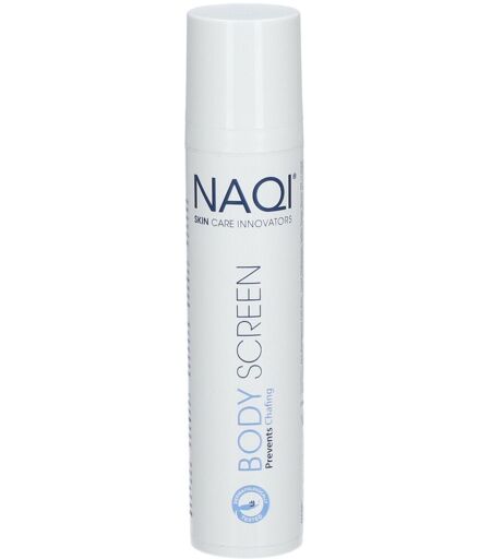 NAQI® Body Screen protège la peau contre les frottements causés par : le contact cutané entre les jambes, la poitrine, dû à la corpulence, etc. le contact entre la peau et les vêtements, les chaussures, les prothèses: le contact cutané avec des fluides corporels, par exemple en cas d'incontinence.BénéficesNAQI® Body Screen : renforce la peau améliore la barrière cutanée prévient et réduit les irritations cutanées causées par le frottement hydrate la peau.IndicationsProtection contre les problèmes de frottementConseils d'utilisationPour prévenir les problèmes causés par le frottement et protéger la peau sensible ou humide, appliquez une quantité suffisante de NAQI Body Screen. Répétez plusieurs fois par jour si nécessaire.CompositionWater, Butyrospermum parkii, cetearyl octanoate, glycol propylénique, stearate, sorbitan monoş palmitate, cyclomethicone, PPG-15 stearyl ether, dimethicone, cocoate, sucrose bisabolol, cetearyl alcohol, panthenol, allantoin, triméthylsiloxysilicate, xanthan gum, urea of imidazolidinyle, paraben methyl (methylparaben), propyl paraben (propylparaben), EDTA, tocopherol.ConditonnementFlacon airless de 100 ml ...