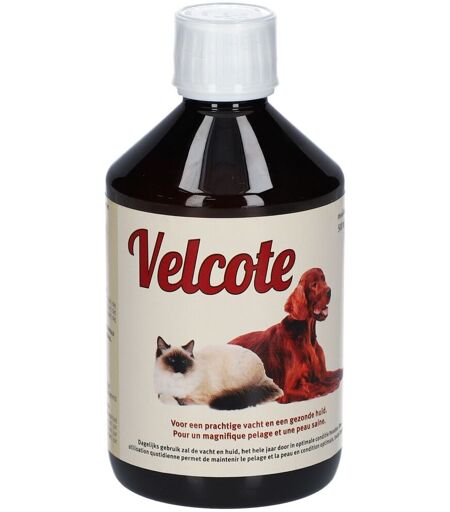 VELCOTE est un complément alimentaire naturels pour chiens, chats, rongeurs et chevaux composé d'un mélange unique d'huiles pressées à froid riches en acides gras Oméga 3, Oméga 6 et Oméga 9 qui agissent rapidement et localement sur la peau depuis l'intérieur.Cette recette aux huiles de noix, de blé et de graines de lin pressées à froid est le complément alimentaire idéal résoudre rapidement de façon naturelle les problèmes de peau ou de pelage terne pour les animaux à poils courts. Les premiers résultats sont visibles dès 7 à 10 jours.BénéficesÉlimine les pellicules au niveau de la peauDonne de l'éclat aux pelages ternesAccélère la mue et la repousse du poilOffre un rapport idéal en acides gras Oméga 3 et Oméga 6Conseils d'utilisationRongeurs, chats et chiens < 10 kg: 1-2 ml par jourChiens de 10-30 kg: 3-5 ml par jourChiens > 30 kg: 5-10 ml par jourChevaux 10-15 ml par jourCompositionHuiles et matières grasses (100% végétales issues de noix, de blé et de graines de lin pressées à froid), ayant naturellement une forte teneur en lécithine, acides oléiques, acides linoléiques, acides linoléniques, acides palmitiques, acides stéariques.ConditionnementFlacon de 500 mlIl est indispensable de demander l’avis de votre vétérinaire ou de votre pharmacien. Si les symptômes persistent, consultez votre vétérinaire. ...