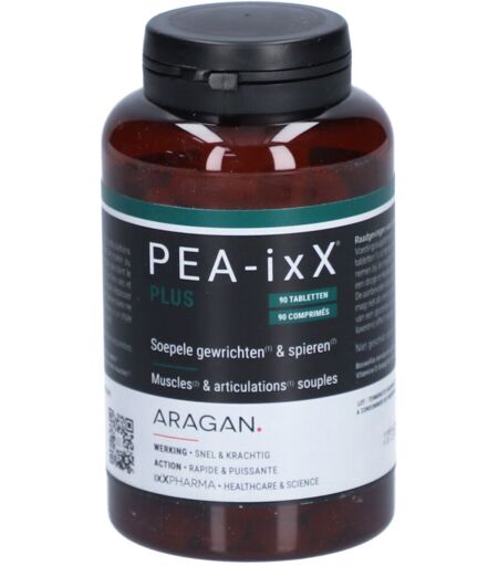 Complément alimentaire à utiliser dans le cadre d’une alimentation variée, équilibrée et d’un mode de vie sain.PEA-IXX PLUS® Soutien articulationsPPEA-IXX PLUS® associe des nutriments et extraits végétaux spécifiquement sélectionnés pour soutenir le bien-être au quotidien.Sa formule innovante combine :Palmitoyléthanolamide (PEA), un composé naturellement présent dans l’organisme et impliqué dans ses mécanismes d’adaptation.Boswellia serrata, reconnu pour contribuer au maintien de la souplesse articulaire.Gingembre, qui participe à la gestion des réponses inflammatoires de l’organisme.Vitamines B1 et B6, qui contribuent au fonctionnement normal du système nerveux et aident à réduire la fatigue.Vitamine D3, qui joue un rôle dans le maintien d’une fonction musculaire normale.En associant ces ingrédients, PPEA-IXX PLUS® contribue au confort articulaire, musculaire et nerveux, tout en soutenant l’énergie et la vitalité au quotidien.Association exclusive de molécules qui apportent un soutien face aux réponses inflammatoiresTrès haut dosage en PEA, une molécule très étudiée : dosage des études scientifiquesVitamine B6 sous forme active et biodisponibleIngrédientsAgents de charge : sorbitol, cellulose microcrystalline ; palmitoyléthanolamide ; oléorésine de boswellia (Boswellia serrata) ; extrait de graines de fenugrec (Trigonella foenum graecum) ; extrait de rhizome de gingembre (Zingiber officinale) ; anti-agglomérant : sels de magnésium d’acides gras ; arôme naturel vanille ; vitamine B1 ; vitamine D3 ; vitamine B6 (pyridoxal-5-phosphate).Données nutritionnellesPour 3 comprimés :PEA : 900 mgBoswellia : 540 mg dont AKBA : 162 mgFenugrec : 150 mg dont galactomannes : 90 mgGingembre : 100 mg dont gingérols : 20 mgVitamine B1 : 21 mg (1909% AR)Vitamine B6 : 6 mg (429% AR) (pyridoxal-5-phosphate)Vitamine D3 : 30 μg (600% AR)AR : apport de référenceConseils d'utilisation3 comprimés par jour De préférence au cours d'un repas À partir de 12 ansPrécautions d'emploi Conserver dans un lieu sec et frais (15-25°C). Tenir hors de portée des jeunes enfants. Ne pas dépasser la dose recommandée. Un usage excessif peut avoir un effet laxatif. Déconseillé aux femmes enceintes. Un usage excessif peut avoir un effet laxatif.Poids net90 comprimés = 112,5 gFabricantixX PHARMABorsbeeksebrug 342600 AnversBelgique ...