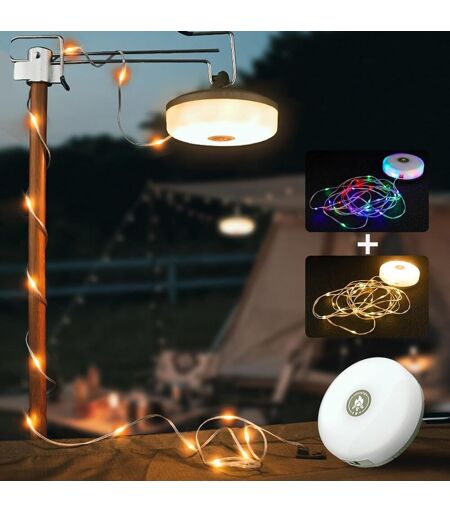 Lumière de camping portable elle combine des lumières de camping et des guirlandes lumineuses de camping en un outil de camping multifonctionnel. Les guirlandes lumineuses d'extérieur de 10 m peuvent éclairer votre tente et créer une atmosphère chaleureuse. Avec le crochet fourni, la lampe de camping peut être facilement accrochée n'importe où.Durable et sûr la bande lumineuse LED est fabriquée en fil de cuivre et en silicone, elle est très flexible, ne s'emmêle pas et se plie facilement. La batterie de 2000 mAh à l'intérieur de la lampe de camping peut fonctionner pendant 5 à 12 heures après une charge complète selon le mode sélectionné.Léger La lampe de camping est compacte et vous pouvez l'emmener partout avec vous. Elle dispose d'un crochet caché qui peut être accroché à une tente, une branche ou un autre support pour vous fournir l'éclairage dont vous avez besoin à tout moment et n'importe où.Rangement rapide et portable en tournant rapidement la poignée, vous pouvez facilement ranger la bande lumineuse en quelques minutes. La lampe de camping ne pèse que 210 grammes, est très légère et portable et peut être facilement rangée dans un sac à dos ou un appareil portable.IPX4 étanche Protection étanche, pas peur du mauvais temps en plein air, peut être utilisé comme éclairage normal même sous la pluieCréez une atmosphère romantiqueCette guirlande lumineuse de camping portable convient non seulement au camping, mais peut également être utilisée comme décoration d'intérieur. Vous pouvez l'utiliser pour créer différentes atmosphères romantiques dans votre tente, terrasse, jardin ou salon. Il s'agit d'un produit d'éclairage multifonctionnel qui vous permet de décorer n'importe quelle scène que vous souhaitez.La livraison depuis la France est prévue dans 5 jours ouvrés, n'hésitez pas à passer votre commande ...