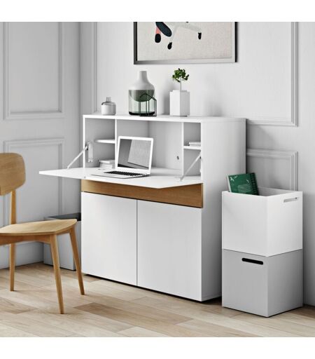 Temahome - Bureau avec porte rabattable 110x42x109 cm blanc mat et chêne - june