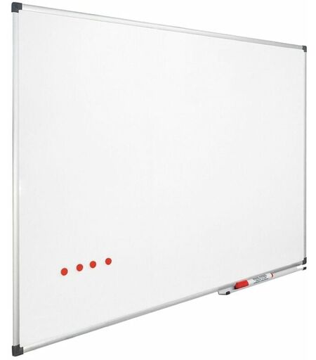 Vous souhaitez acheter un tableau blanc magnétique pour votre bureau, votre école ou votre maison ? Ce tableau présente un excellent rapport qualité-prix. Il est idéal pour une utilisation hebdomadaire ou mensuelle lors de réunions ou séances de brainstorming. Le tableau blanc est facile à utiliser car effaçable à sec et magnétique. Tableau blanc magnétique 100 x 150 cm Le tableau blanc mangétique est fabriqué en acier laqué de haute qualité. La surface d'écriture est donc facile à utiliser les marqueurs pour tableaux blancs. Vous pouvez ensuite facielement effacer la surface du tableau à l'aide d'un effaceur, d'un chiffon sec ou en microfibre ou de lingettes jetables. Vous trouverez ces produits dans notre catégorie "accessoires". De part l'aspect magnétique de la surface du tableau, il est possible d'aimanter des notes ou des photos au tableau. Les marqueurs pour tableau blanc peuvent être placés dans le porte-stylo amovible au bas du tableau. Le cadre en aluminium ne donne pas ...
