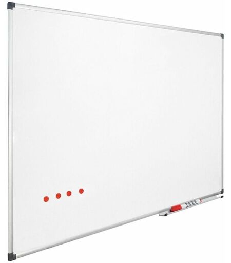 Vous souhaitez acheter un tableau blanc magnétique pour votre bureau, votre école ou votre maison ? Ce tableau présente un excellent rapport qualité-prix. Il est idéal pour une utilisation hebdomadaire ou mensuelle lors de réunions ou séances de brainstorming. Le tableau blanc est facile à utiliser car effaçable à sec et magnétique. Tableau blanc magnétique 80 x 110 cm Le tableau blanc mangétique est fabriqué en acier laqué de haute qualité. La surface d'écriture est donc facile à utiliser les marqueurs pour tableaux blancs. Vous pouvez ensuite facielement effacer la surface du tableau à l'aide d'un effaceur, d'un chiffon sec ou en microfibre ou de lingettes jetables. Vous trouverez ces produits dans notre catégorie "accessoires". De part l'aspect magnétique de la surface du tableau, il est possible d'aimanter des notes ou des photos au tableau. Les marqueurs pour tableau blanc peuvent être placés dans le porte-stylo amovible au bas du tableau. Le cadre en aluminium ne donne pas ...