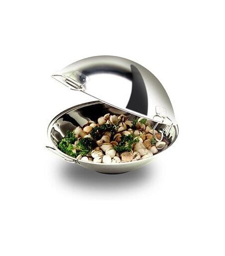 Ce cataplana en inox sera parfait pour faire cuire vos poissons, viandes ou légumes de manière traditionnelle, comme au Portugal ! Le couvercle pourra être fermé et verrouillé grâce aux deux attaches latérales, lors de la cuisson. Cette forme permet de cuire vos préparations dans leur jus, en conservant l'humidité pour des viandes et des poissons bien tendres ! L'aluminium conduit la chaleur pour une cuisson uniforme de vos préparations. Vous n'aurez pas besoin d'ouvrir le cataplana pour remuer vos préparations, il suffit d'agiter le récipient ! L'entretien est facile, le cataplana est résistant et durable. ...