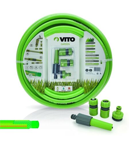 Vito - Kit d'arrosage jardin pvc renforcé 20 m diam 15mm lance multi jet +2 raccords + nez de robinet