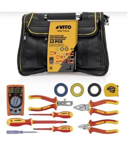 VITO PRO-POWER Sacoche électricien 12 Outils Poignée acier renforcée Nylon haute Qualité Sac bandoulière vito
