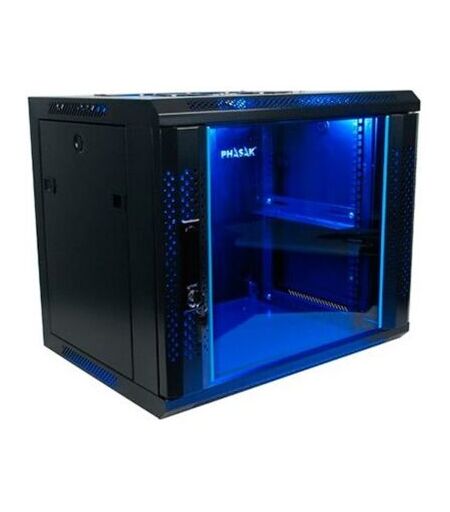 Armoire rack 15U Phasak rack mural noir, idéal pour les serveurs et les télécommunications, design compact, robuste, montage facile et ventilation