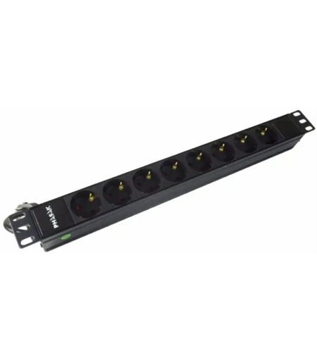 PHASAK Bloc multiprises 19″ sans interrupteur bns 3518 - 8 prises Schuko, cable 1.8M, 16A, 3500W, protection contre les surcharges, montage en rack, idéal